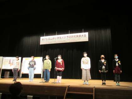 新庄小学校の代表として5年生7名が「富山県火災予防研究発表大会」に出場しました。教育文化会館には、富山県内13校の代表の子供たちが集まり、自分たちが活動した内容を発表しました。新庄小の5年生7人も、堂々と発表することができました。
