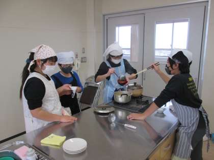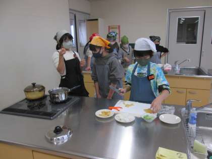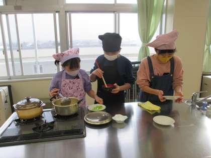 今日は3組が調理実習を行いました。話をしっかりと聞き、安全に調理をすることができました。