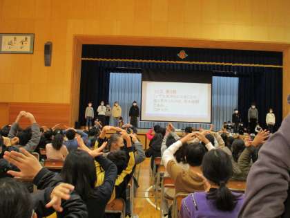 5・6年生を対象に学校保健委員会が行われました。今年度のテーマは「心の健康」で、心を健康に保つための方法について、保健委員が発表やスクールカウンセラーの先生の話を聞きました。