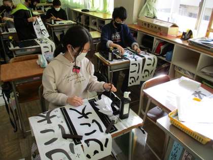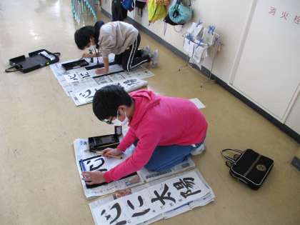 6年生の来年の書き初めは「心に太陽」です。今から少しずつ練習を進めていきます。