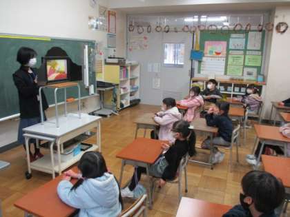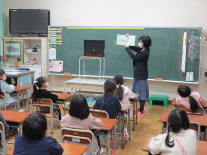 司書の高田先生が教室に来て、読み聞かせをしてくださいました。