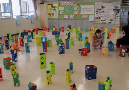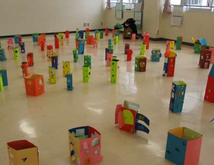 懇談会期間中に限り、2階プレイルームに 全てのビルがたっています。
