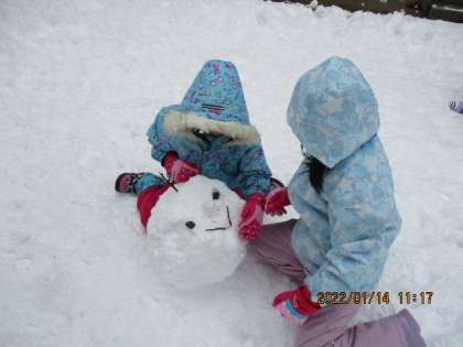 「雪玉が大きくなると重たくなったから、みんなで転がしたよ」