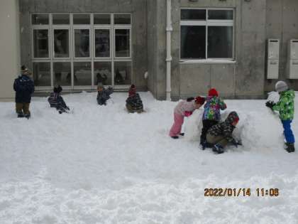 たくさんの雪が積もったので、生活科の時間に雪遊びをしました。