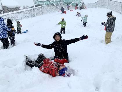 たくさん降ったふかふかの雪で、雪合戦をしたり、そり遊びをしたりしました。汗をかくほど遊んで、みんな満足そうでした。