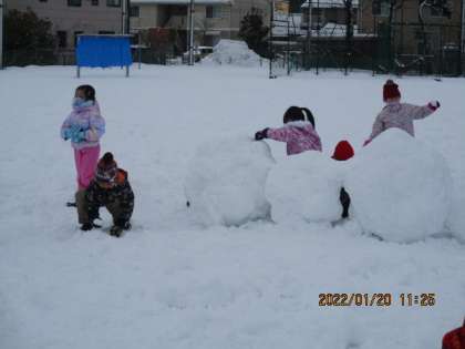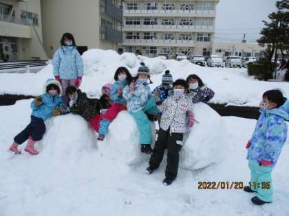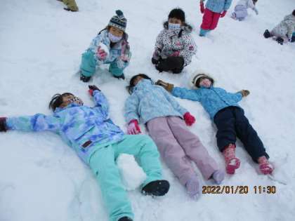 そりすべりを楽しんだ子供たち。その後、雪の上に寝転んだり、雪合戦をしたりして、いろいろな雪遊びを楽しみました。