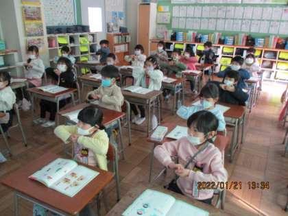 上の写真は、書写体操をしている様子です。正しい姿勢と鉛筆の持ち方を確認し、字の形に気を付けて書く練習をしました。