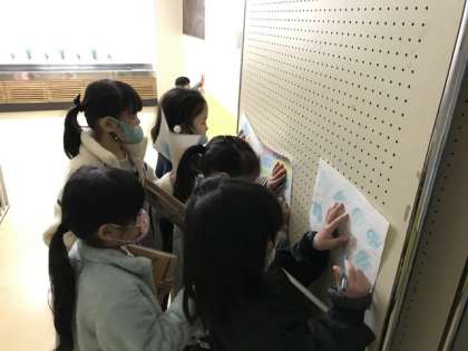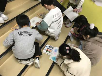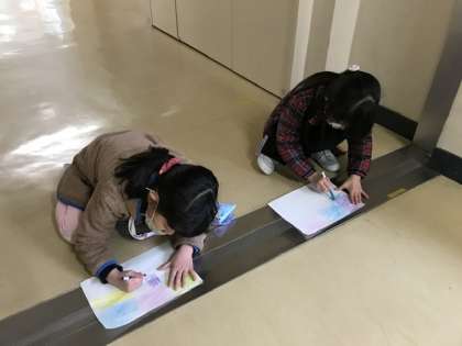 でこぼこしているところを見つけて、こすり出しをしました。夢中になってあちこちを探し回り、いろいろな模様を集めていました。