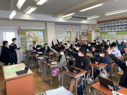 運営委員会企画の「クラスじまん紹介」に向けて、6年2組の自慢について話し合いました。まずはクロームブックで自由に意見を出し合うと、「笑いが絶えないところ」「個性が豊かなところ」「毎日残食がないところ」等、あっという間に画面がいっぱいになりました。よいところがたくさんあることに喜びを感じるとともに、卒業前に学級の仲間への愛着を深めることができ、心温まるよい時間になりました。