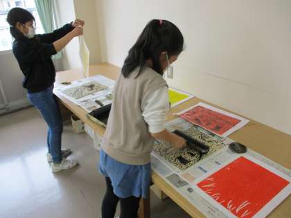 子供たちは、一生懸命に刷っていました。