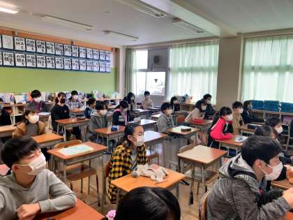 今日は児童会活動を5年生に引き継ぐ、大切な式がありました。各委員会の代表者が体育館で引き継ぎを行い、4〜6年生は教室からリモートで参加しました。