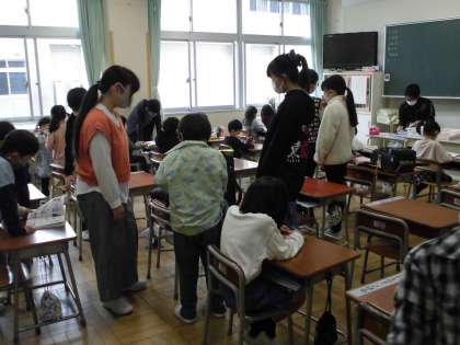 今週は2組が一年生のお世話の担当です。初めは緊張しながら関わっていた6年生ですが、友達と悩みを共有したり、アドバイスをもらったりして、今では率先して関わっています。