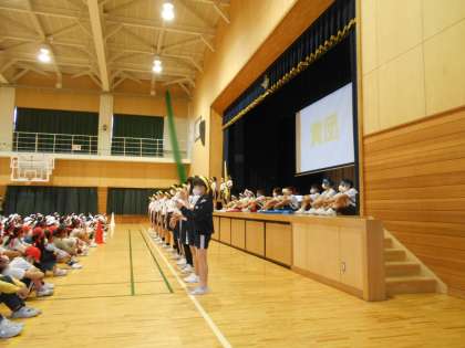 今日は運動会の結団式がありました。運動会のスローガン発表や各団の団員・スローガンの紹介を行いました。どの団からも運動会への熱い気持ちが伝わってきました。本番に向けて、団の仲間と協力し、よりより運動会にしてほしいです。