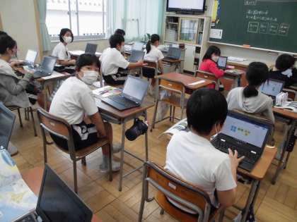 この日はクロムブックを使い、日本の地形で気づいたことを、グループでまとめました。