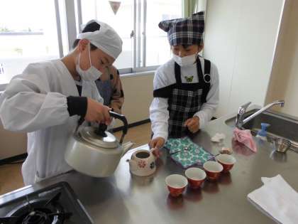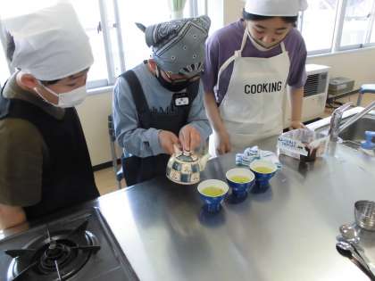 ガスコンロの使い方を確認しながら、丁寧に入れていました。