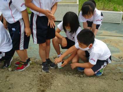 理科の学習で、ヘチマの種を植えました。これからの成長を楽しみにしている子供たちでした。