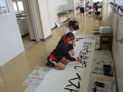 今週末の運動会に向けて、6年生はとても頑張っています。運動会のスローガンや団のスローガン等の準備も大詰めです。
