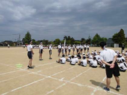 応援練習の様子です。6年生全員がリーダーとして下学年に接していました。