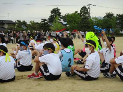 運動会の様子です。運動会スローガンのように、オリンピックより熱い運動会となりました。