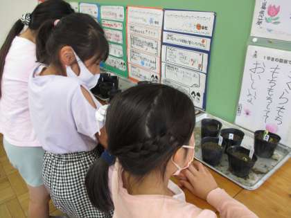 「すごい!」「もっと大きくなってほしいな」「毎日水をあげよう」とうれしそうな様子でした。