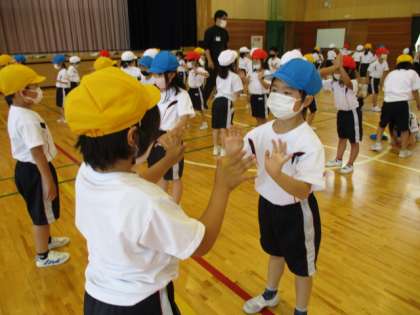 今日は体育で体ほぐしの運動をしました。手押し相撲や、足じゃんけん、体力アップメニューに楽しみながら取り組みました。