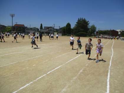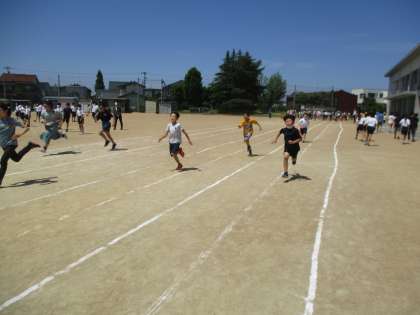 絶好の天気の中、友達と競い合いながら自分のタイムを少しでも縮めようとがんばる子供たちです。