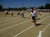 体力テストの1つ、50m走のタイムを測りました。去年の自分より速いタイムを目指して、全力疾走しました。