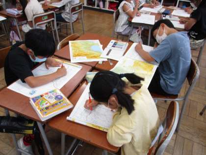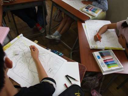 子供たちは「こんなにたくさん鉄道があるんだ」「今度の校外学習で41号線を通るのが楽しみだね」と興味を持って学習に取り組みました。