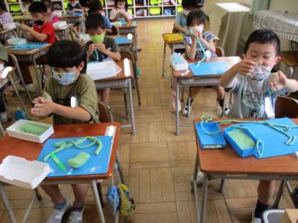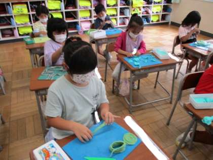 今日は図画工作科で粘土をしました。ひもの形から作れるものを考え、楽しく取り組みました。