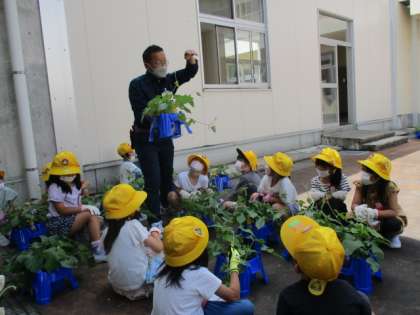 子供たちが大切に育ててきたアサガオがぐんぐん大きくなっています。