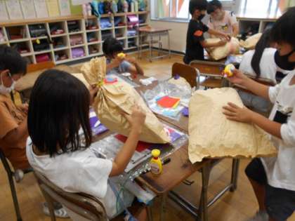 図工「くしゃくしゃぎゅ」の続きをしました。
