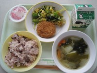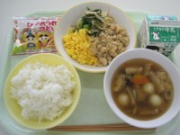 今日の献立は、粗挽きウインナー、アスパラサラダ、ツナとキャベツのスパゲッティ、棒チーズ、食パン、牛乳です。
