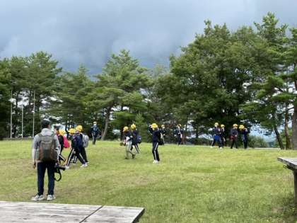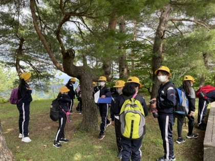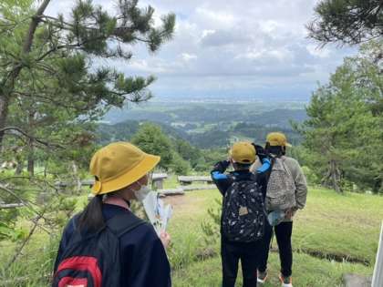 村内ビンゴオリエンテーリングの様子です。景色や草花を楽しみながら歩いています。