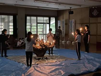 キャンドルサービスの様子です。みんなで静かな気持ちで火を見つめ、今日一日を振り返りました。