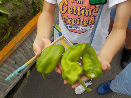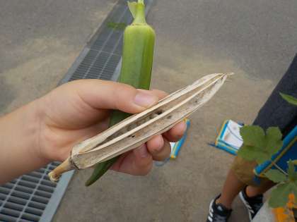1学期に植えたオクラ・ピーマン・ワタ・ホウセンカの観察をしました。