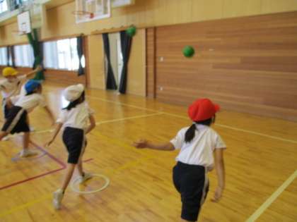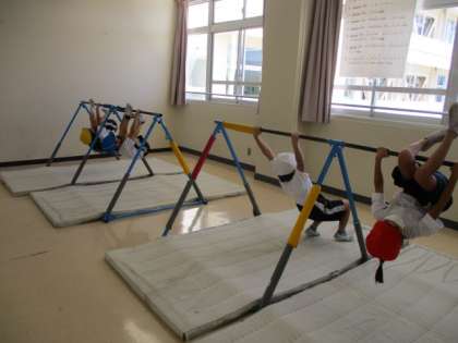 体育では鉄棒とボール投げをしています。 練習を重ねるごとに、どんどん上達しています。