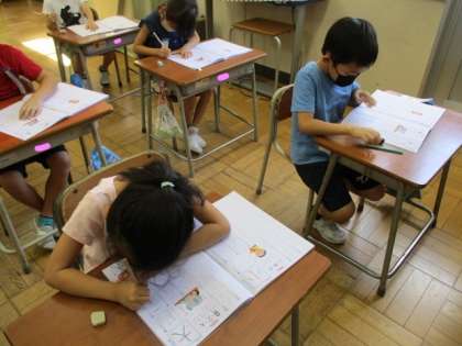 国語では、漢字の学習が始まっています。子供たちは、とめ・はね・はらいに気を付けながら丁寧に取り組んでいます。