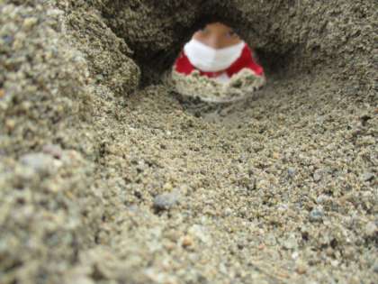 子供たちは遊びながら砂の色に注目し、「茶色い砂はしっとりしてるから固めやすい」「白い砂はさらさらだから仕上げに使おう」など気付いたことを生かしながら、活動していました。