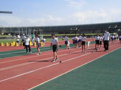 初めての陸上競技場、初めて会った他校の6年生、と初めての経験がたくさんあった陸上記録会になりました。
