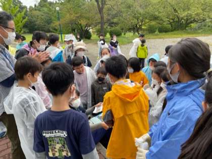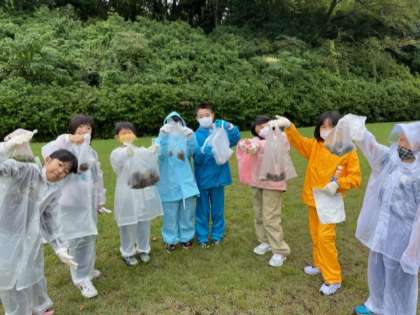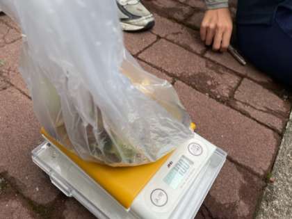 たくさん拾いました。100g目指して計測すると…なんとぴったりの班がありました。みんな集まってきて大盛り上がりです。