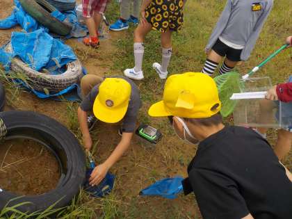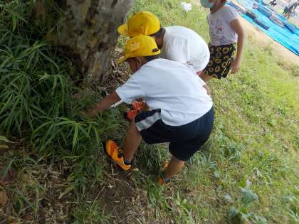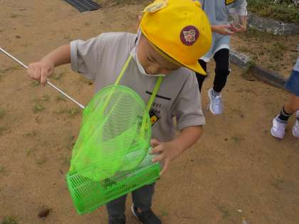 「土俵の周りにはコオロギがたくさんいるよ」「野菜畑の近くにはカエルやダンゴムシがいるよ」それぞれになかよしの友達になりたい生き物を探しました。