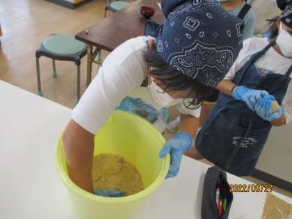 空気が入らないよう気をつけながら、最後は樽に入れて完成です。 1月に味わうのが楽しみです。