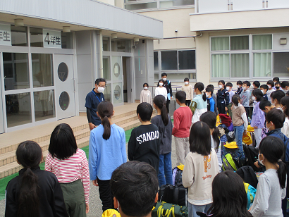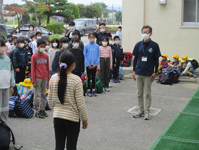無事、新庄小学校に帰ってきました。学校に着いてからの帰校式も気を抜かず、姿勢を正して参加していました。