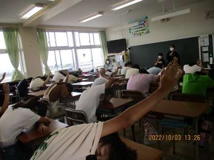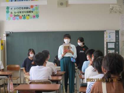 読書タイムに、図書委員会が企画した「ビブリオバトル」を行いました。各教室で発表者3名がおすすめの本を紹介し、それを聞いていた人たちは読んでみたい本を選びます。発表した子供たちは、自信をもって本の内容を紹介したり、質問に対して答えたりしていました。本を選ぶ子供たちは、発表者に質問することで、一番世みたい本を決めていました。