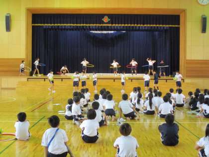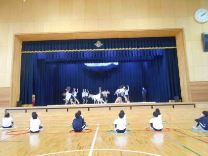 今日は初めて体育館で学年そろっての練習を行い、お互いの演技を見合いました。うまくできたところ、できなかったところを確認し、来週末の本番に向けて意欲を高めている子供たちでした。