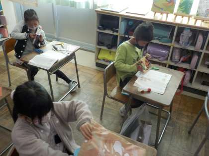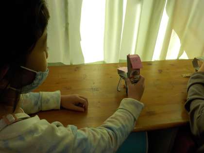 教科書の説明文を読んで馬のおもちゃを作りました。どんな説明が書いてあると作るときに分かりやすいかを考えました。