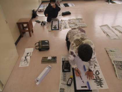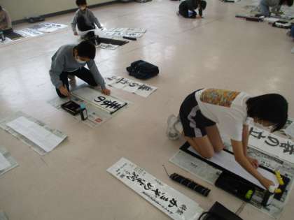 書写の時間に、3学期始業式に行う書き初め大会の練習を行いました。今日は本番と同じように「春の立山」と書いてみました。漢字と平仮名の大きさのバランスや、とめ、はねなどに気を付けて、一画一画ていねいに書く様子が見られました。