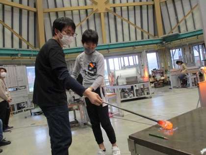 今日、1組は富山ガラス工房へ行き、卒業記念品(ペーパーウエイト)を制作しました。形や色等のデザインも自分たちで考えました。一つ一つ丁寧に工房の方に教えていただきながら、納得いくペーパーウエイトをつくることができました。出来上がりが楽しみです。
