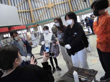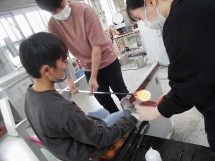 今日、2組は富山ガラス工房へ行き、卒業記念品(ペーパーウエイト)を制作しました。形や色等のデザインも自分たちで考えました。一つ一つ丁寧に工房の方に教えていただきながら、納得いくペーパーウエイトをつくることができました。出来上がりが楽しみです