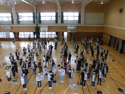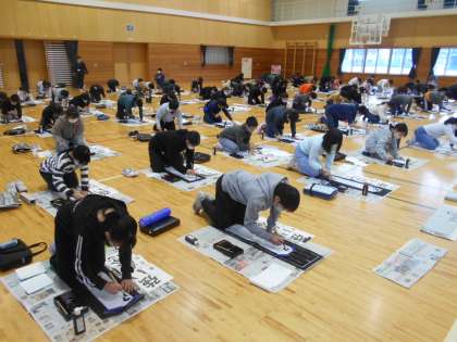 3学期の始業式の後、体育館で書き初め大会を実施しました。